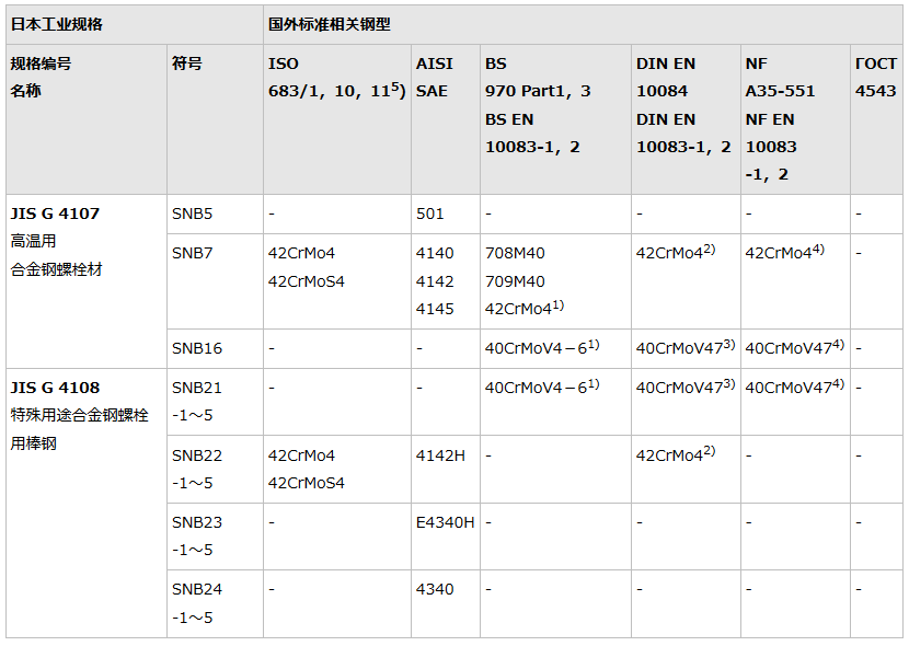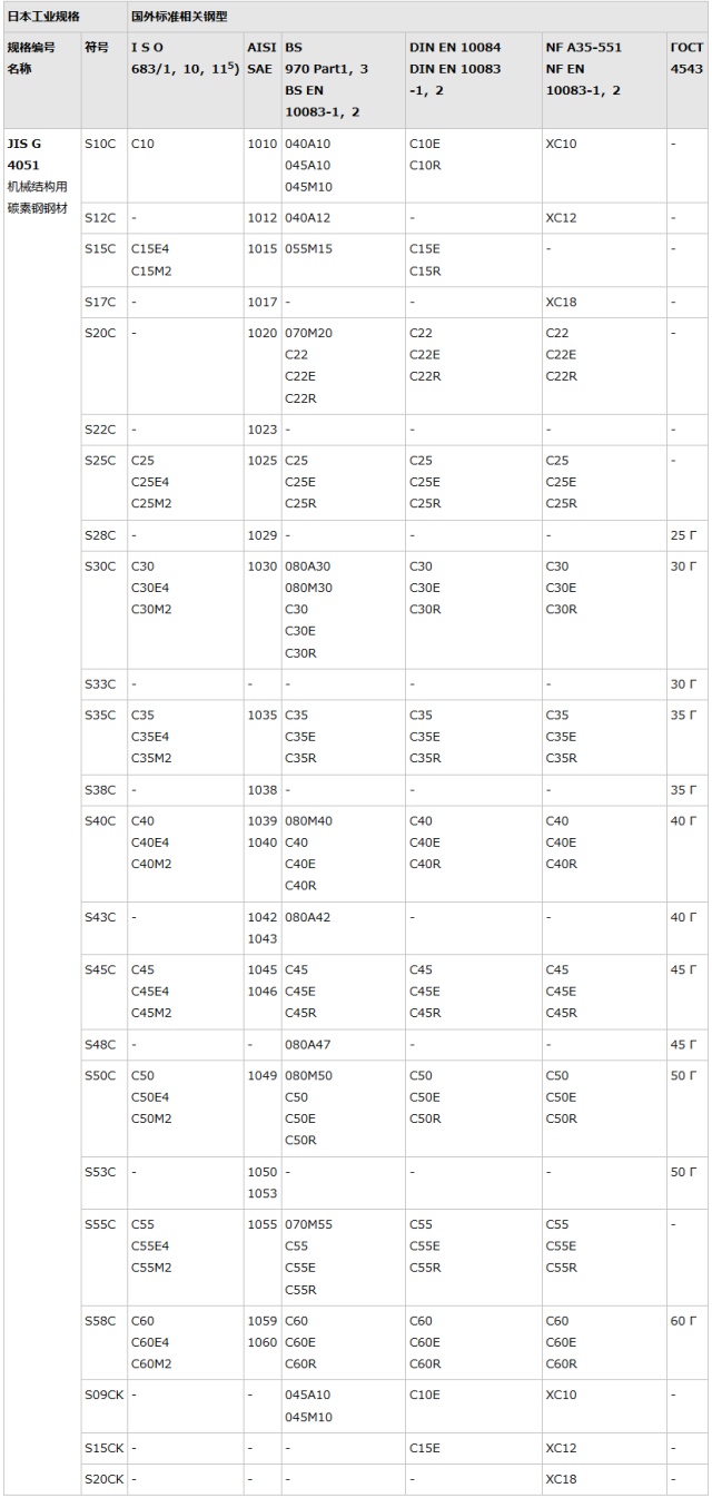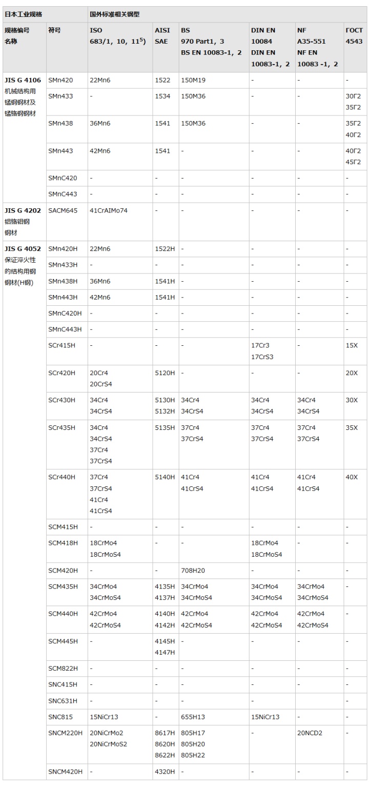 2.美国规格为参照UNS登录编号和AISI钢材手册。